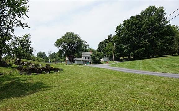 Arts & Crafts style farmhouse in charming private country setting on just over 4 acres and is surrounded with mountain views!Bonus of business potential for dog training & grooming. Renovated home with large slate tile foyer to country kitchen with lots of cabinets, stainless appliances and Corian counter tops. Breakfast bar and open floor plan for dining and living room space featuring skylights, high ceilings, cast iron fireplace, woodlike vinyl flooring and fantastic light!Walk-out to huge back yard and patio dining area, H&C running shower, and fenced play area for your pets.Hardwood stair case to full master suite with nursery or reading area, master bath with laundry, and a home office area to walk out.Third level is huge bedroom with private bathroom and lovely brick wall for that arts & crafts appeal! Bonus of 2 car detached garage with home business area, solar panels leased, and chicken coop! Park like gardens and walkways are beautiful & new driveway.Washingtonville Schools!