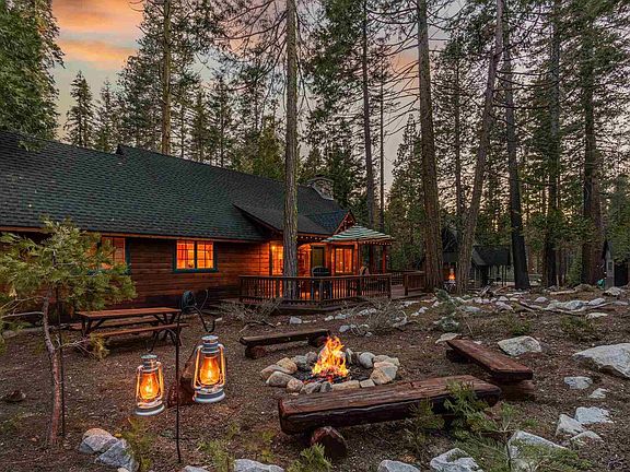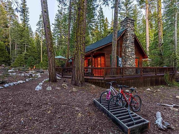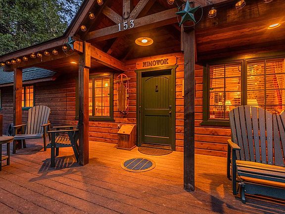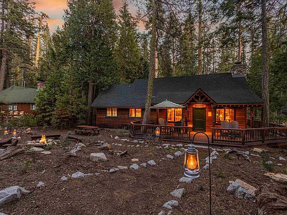 Seize the rare opportunity to own & enjoy this Pinecrest cabin that is second to none. This majestic 4-season cabin was completely rebuilt in 2004 with high quality construction and attention to detail. You'll love the welcoming curb appeal as you walk down the hand-laid granite steps to a path lined with hanging lanterns leading to the cabin's entrance and deck. The front Trex deck looks out to view a unique formation of granite boulders and a scene out of a story book as you stand amidst beautiful tall pines and a camp fire-pit circled by wooden benches, ideal for roasting marshmallows on summer nights under the starlit sky. Step inside the living room and be awed by the 15 foot rock-faced fireplace with a handsome handmade wood mantel and a stunning glass chandelier. French doors lead to a back deck that wraps around half the house and has a completely private feel; a quiet spot to enjoy your morning coffee in the fresh pine-scented air and a great place for kids to play safely. The magnitude of the quality and the uniqueness of the cabin's art captures the history and culture of the area, especially the Native American artifacts, antiques & 3-D art. This is all included in the purchase along with all the furniture and furnishings that were hand-selected and purchased in 2010/2011 specifically for this cabin. The kitchen has stainless steel appliances and quality cabinetry with a window overlooking the picturesque front yard. Cathedral ceiling, solid wood flooring, French doors, Anderson dual pane windows and a concrete perimeter foundation showcase the overarching quality of this home. This spacious 1,800 square foot cabin has 4 bedrooms and 2 full bathrooms and a large loft. There are 3 bedrooms on the main level with the main bedroom having French doors leading to its own private deck. The first level also has 2 full bathrooms and a laundry room next to the kitchen. The cabin is equipped with central heat and for ease and the water shut off is inside the house. Underneath the house is a large storage room on a concrete slab to store bikes, boats, skis, sleds, snowboards; all manner of mountain play equipment. This ideal location is a short stroll to iconic Pinecrest Lake and a few minutes drive to Dodge Ridge Ski Resort. Rustic Road is plowed in the winter.