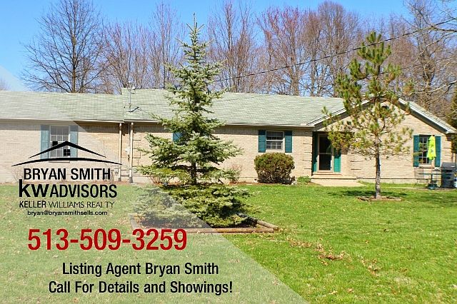 Call Listing Agent Bryan Smith at (513) 509-3259 for more details and to schedule showings! Your very own country escape! Open & spacious brick ranch with cathedral ceilings throughout, huge remodeled master suite with garden tub, 2 fireplaces, 32x14 deck, fenced back yard. Nothing to do but move in! Qualifies for 100% USDA Financing!