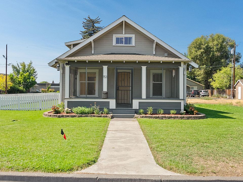 This thoughtfully updated 4-bed, 1-bath historical home sits on a corner lot in the heart of Redmond's Urban Renewal District and offers rare commercial zoning flexibility. Blending classic charm with modern upgrades, it features marble kitchen counters, a brand-new bathroom, hardwood floors, energy-efficient heating & cooling, a gas fireplace, tankless hot water heater and abundant natural light from the ample windows. Relax on the screened front porch, enjoy the fenced side yard, and take advantage of the spacious attached garage on a prominent corner lot. Wired for both a hot tub and RV. Located just moments from Hwy 97, a short walk to downtown shops, and popular food carts like General Duffy's & Blacksmith Public House. Another short walk lands you in the Dry Canyon for outdoor activities .Whether you're looking to live, work, or invest—this unique property offers unlimited potential in a highly desirable location.
