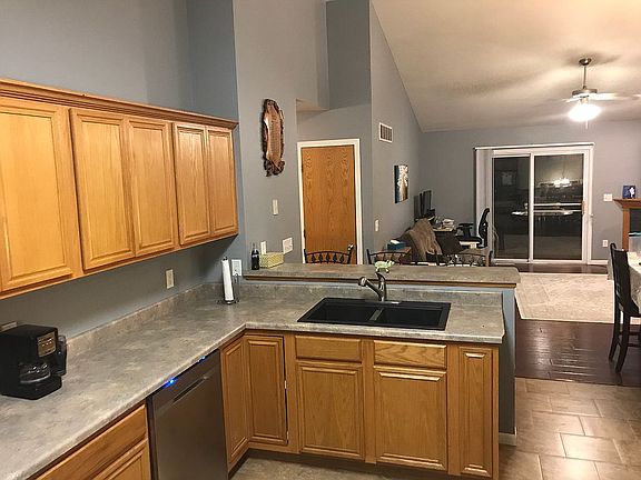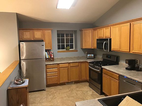 Move in ready zero lot home with an amazingly big yard & nearly 1/3 acre lot! Open main floor with vaulted ceilings, engineered wood floors, gas fireplace, tiled kitchen & all new paint. Huge kitchen with newer stainless appliances and plenty of cabinets & counter space. 2 bedrooms & bath on the upper level, and another bedroom & bath on the ground level. Lots of great features like new water softener, washer & dryer included, walkout lower level, deck, & 2 stall att garage. Close to schools & downtown!