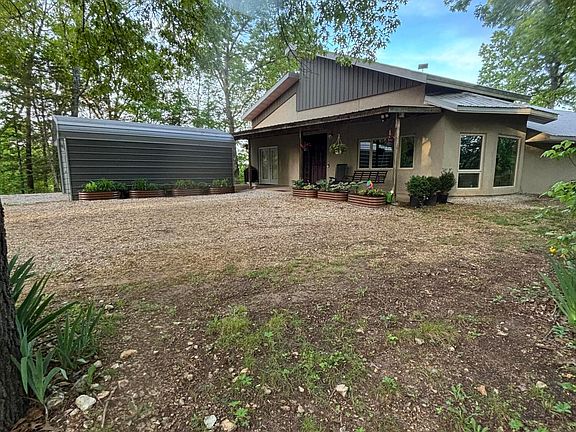 This meticulously crafted custom-built home offers exceptional quality, comfort, and versatility on 54.04 acres complete with a wet weather pond, 2 garden areas, a workshop, and a 2ND RESIDENCE. The main home features a durable Dryvit EIFS stucco exterior and is built for efficiency and strength with 10'' exterior walls on the main floor and 12'' exterior walls in the walkout basement. Interior wall insulation adds extra soundproofing and energy efficiency. Enjoy modern amenities such as a Wi-Fi thermostat, radiant in-floor heating, stained concrete floors, central vacuum system, and full wheelchair accessibility throughout the home. In addition there are 3 bedrooms plus a 4th non-conforming bedroom, 3.5 bathrooms, a spacious sunroom, large kitchen with plenty of cabinets, separate dining room, and 2 additional living areas. Expansive windows frame picturesque views and fill the home with natural light, while open ceilings create an airy, spacious feel throughout. The property is mostly wooded with some open pasture area, along with pear and apple trees. The well and septic system are shared with a 3 bedroom/2 bath doublewide mobile home that is perfect for extended family, rental income, or a caretaker's residence. Each residence has a metal carport for covered parking. This unique property offers privacy and space in a beautiful natural setting and is only 18 miles to Cape Fair Marina and 30 miles to Springfield's medical facilities. Whether you're looking for peaceful country living, space to grow, or a multi-generational retreat, this one-of-a-kind property offers comfort, privacy, and room to thrive. Come experience the views, the quiet, and the lifestyle--your dream home in the country is waiting.