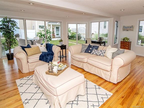 Waterfront side of Shore Road! Don't miss out on this one... Unlock the door, open the sliders, turn on the tunes & relax in this open floor plan, beauty that is recently updated. The huge Great Room which is surrounded by windows and sliders has beautiful views out to the beach and water. The deck with retractable awning overlooks the manicured yard and LI Sound. Head out to the front, sit in the Adirondack chairs & soak up the sun, water and pure relaxation. The Kitchen w/ gorgeous new granite counters has a cathedral ceiling along w/ white cabinetry which allows for easy entertaining. There are 2 bedrooms on the main level along w/ a full bathroom for convenience. The second floor is currently utilized as a Master Bedroom Suite w/ full bath. Mornings begin on your private upper deck w/ beautiful views. There is a Nuvo sound system (need app) w/ 4 zones that streams great music. The exterior has a private outdoor shower area and storage room - maintenance free vinyl shake siding, composite style decking and an easy yard to maintain, which makes enjoying this home a pleasure year round. The property is considered a "condo" as it shares the land in common with 1 additional property. Subject was completely remodeled/gutted approx 1993 timeframe - Condo docs are available for review. Property is in a Trust, and agent is Trustee. The two houses at 153 Shore Road share in the costs of common ground maintenance. Typical expenses are: lawn, snow removal for driveway, replacement of crushed stone for driveway, common insurance or seawall expenses, the costs are split 40% for the subject property and 60% for the other house. The current flood insurance premium for the subject is $2121/yr, and policy can be transferred to buyer for the remainder of the term. The Clinton Beach Assoc dues are approx $200 - and covers annual garbage pickup at curb.