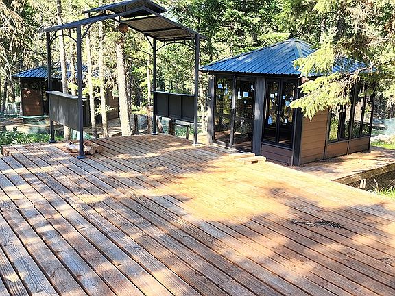 Camping Destination! Wooded five acres about 15 minutes drive SE of closest marina on Lake Koocanusa in Rexford, and 16 minutes drive from services in Eureka, MT to the NE. Property has 6 RV pads so everyone can pull into their own spot at one of the built in decks set up with four 50 AMP RV connections with power, phone and water. There are also two glassed-in gazebos for rainy days, 1 shed/pumphouse and 2 sheds for ATV storage. Currently RVs dump into a holding tank. New owner would need to apply for permit if a full septic was desired. Call Scott Hollinger at 406-253-7268, or your real estate professional.