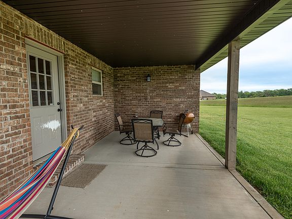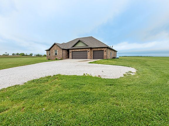 Hard to find open-floorplan newer home on 3 serene acres just East of Clever! Sitting in a quiet-cul-de-sac, this 4 bedroom, 2 bath all-brick ranch-style home is the epitome of getting away from it all! With nearly 2000 sq.ft. of living area and built in 2018, this home has split bedrooms with the master down a long hallway providing excellent privacy, an open kitchen and living area with exposed beams, gas fireplace with shiplap accent to the ceiling, hardwood floors, light granite countertops, and subway tile backsplash as well. With a distinct modern farmhouse design and theme, this space is a real showstopper. Other features include stainless appliances, a separate laundry room, double vanities and oversized shower in the master suite, and of course a huge covered deck overlooking the open acreage. Just minutes to Clever and easy access to Hwy 14 as well. Clever schools.
