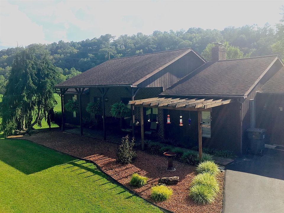 S-P-R-E-A-D out in this home with an abundance of space and character. Ky river is near end of back property line of this property through a part of sellers family members piece of land. Property around the house never floods..In the field behind house is now considered in a flood plain with the Fema new mapping.This stunning home has a bricked wall in the kitchen,dining rm and great rm. Kitchen has newer appliances including a gas range to cook on. Both bathrooms have been remodeled.Great rm. on main floor is a one step down sunken rm.plus has a tall bricked fireplace with a gas log insert and large patio door leading to covered rear porch. A finished basement with family room, and 2 lg. rooms used as bedrooms.Gas heater in basement is great for back up heat. Hot water heater is also natural gas.Large covered front porch and well landscaped yard plus a one car attached garage. One owner home in excellent condition..walking distance to Main street but yet private and country setting.