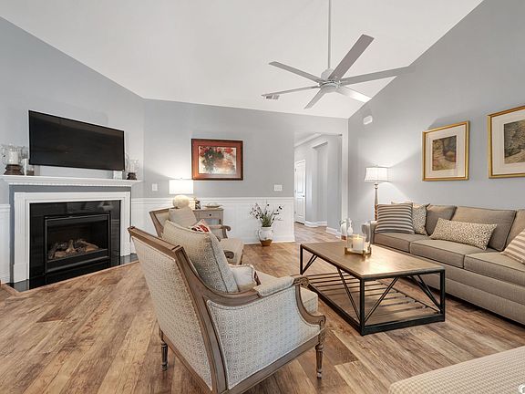 Great opportunity to own a single level home in Pawleys Island, SC! This cute home resides in a small community East of Hwy 17 known as The Colony. 153 Southgate Ct. offers 3 bedrooms, 2 baths, and an open concept floor plan with a gourmet kitchen and fireplace. The vaulted ceilings offer an inviting space that is great for entertaining. Located at the back of the house is the owner's suite with a large bedroom, bathroom with double sinks, large walk in closet and glass shower. Each bedroom in this home contains custom crown molding even in the guest rooms that share a full bathroom at the front of the home. The laundry room is equally nice as there is ample storage space with custom built cabinets beside and above the washer and dryer. Outside space is far from lacking as you can sit on your screened porch and enjoy the view of a pond behind your home. This home is worth coming to view if you are looking for a beautiful one level home in the Lowcountry.
