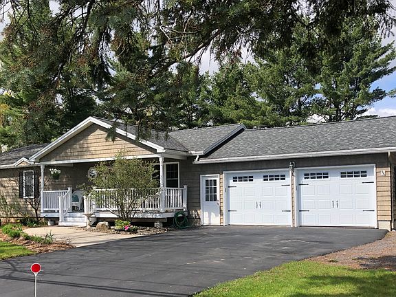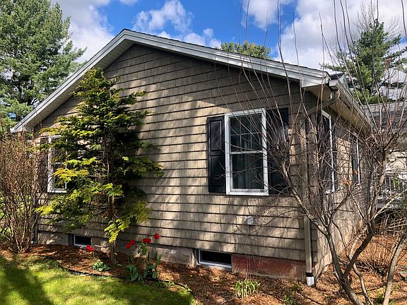 This 1957 ranch was completely, architecturally renovated in 2006. It is an open concept ranch that affords abundant sunlight, vaulted ceilings and nature views. Featuring original red oak hardwood floors and a 440 sq. ft. addition with a full, poured concrete basement below, this ranch lives large. Renovation in 2006 includes the following: new roof, all new thermal pane, tilt out windows (easy cleaning), completely new floor plan for spacious, open living, bathrooms and kitchen brand new from the studs out, SolarTube in kitchen, large master bedroom with en suite master bath, beautiful moldings and wainscoting throughout, all cabinets and built-ins created by a local craftsman, Brazilian cherry and granite countertops, propane stove with Brazilian cherry fireplace surround, 20' x 20' composite deck with vinyl railings, 22' x 8' composite front porch with vinyl railings. Lovely vinyl, shingle-look siding and shutters all around complete a New England look with easy maintenance. The basement features 872 sq. ft. of finished living area including a full bathroom, bedroom with walk-in closet, living room with stone wall and mantel, plus a 768 sq. ft. unfinished storage/furnace area with loads of solid, quality shelving for storage of seasonal items. In addition to the lovely shaded side yard with shed, the back yard is fenced in, spacious and private with it's cedar hedge; perfect for the whole family! This home is located directly across from Peru Central School Elementary building, soccer field, baseball field and football field and offers direct walking access to multiple playgrounds, library, tennis courts, churches, stores, and nature trail.