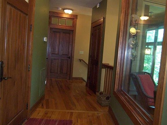 Custom craftsman Lake Lure waterfront home. This home has a level entry, 2 bedrooms, 3.5 baths, volume ceilings, & hardwood floors. It features 2 master suites, granite countertops, stainless appliances & breakfast bar. There are a living room & a family room, each with built-ins & a stone fireplace with gas logs. There is also a screen rear porch, a sun room, full length concrete decks, dock & swimming area, & boathouse with roof-top deck. So much to enjoy; so many ways to relax.