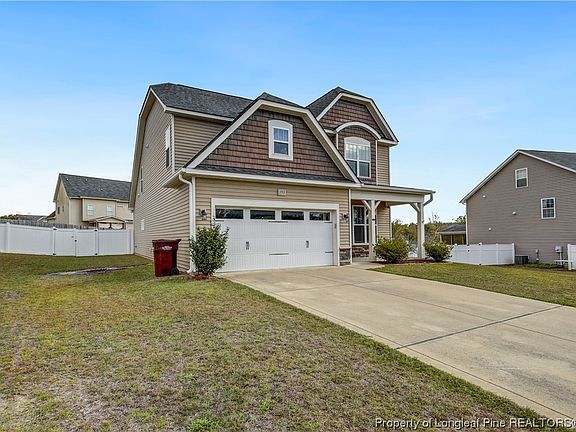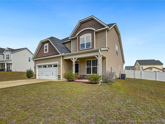 Beautifully maintained home on a cul-de-sac with an easy commute to Fort Liberty or US-1. The heart of this stunning home is the centrally located, spacious kitchen- complete with an island, a pantry, and ample storage. Entertain your guests easily in the formal dining room or in the living room with vaulted ceilings. The convenient first-floor primary suite has gorgeous tray ceilings. The primary walk-in closet is an absolute show-stopper with custom cabinetry that provides TONS of storage! Unwind in your ensuite's spa-like jetted tub or separate shower. The second floor has a loft/bonus space, three large bedrooms, and an additional bathroom. This home has new flooring in some areas including the stairs, bathroom, and bonus space. Relax on the back deck in the mornings while you enjoy your coffee. Neighborhood amenities include a community pool, Gym, clubhouse, and a playground.