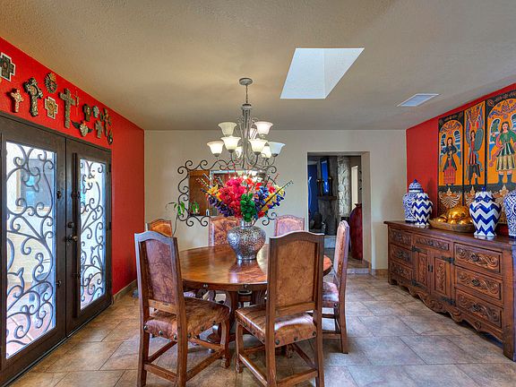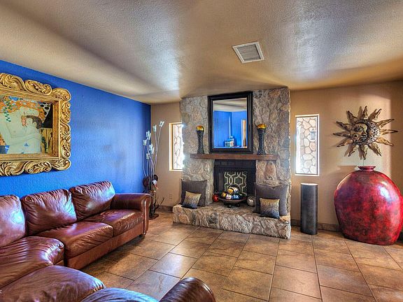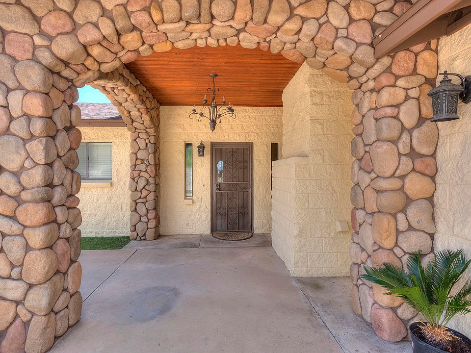This gorgeous home has a 4 car garage and beautiful features... Kitchen with quality cabinetry and counter tops. Family room includes custom shelving and a bar area, perfect for entertaining. A warm stone wall fire place located in the formal dining room.A very spacious Master Bedroom that features hand crafted iron french doors leading to the outside. Earth tone tilling through out the home giving it an inviting feeling. A covered patio with its own bar and a BBQ area under the ramada. A small guest room conveniently located outside with its own bathroom. It's a must see home!