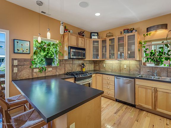 Wonderful end unit town home in the heart of Carbondale with roof top deck that has stunning 360 views! Two spacious Bedrooms that each have their own bath along with a half bath on the main level. Enjoy the easy floor-plan and open kitchen with deck access. Living room features a gas fireplace and built in window seat with Mt Sopris views. Over-sized two car garage. Maintenance free living in a convenient location close to parks, Crystal River, soccer fields, stores, restaurants and other in-town amenities.