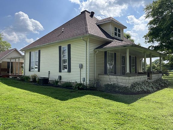 EDGE OF TOWN LOCATION for this charming home. It features 2 bedrooms and 1 bath on .71 of an acre. Enjoy your morning coffee from either the front porch or covered side porch with swing. An outbuilding with electricity and loft storage could be used for landscaping needs, or storage. Inside features a large dining room and 15 x 15 master bedroom. Unfinished attic provides extra storage space. Country living without being too far from town!