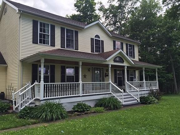 Peace and serenity await you when you buy this 3 bed, 2.5 bath home on 5.01 acres. Large living room, formal dining room, spacious eat-in kitchen, office, downstairs entertainment area, decks, and gardens are only some of the highlights. A great front porch and porch swing is there waiting for your glass of wine at the end of a busy day. Mature hardwood trees encompass more than half of the property. Don't hesitate to come and see this beautiful home right away.