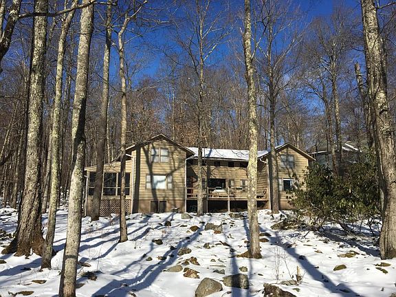LAKE PAUPAC CLUB,established in 1916 offers its members 1,319 Acres of CONSERVED lands with private 110 acre pristine lake. Kayak,canoe,sail,fish or hike trails to majestic Silver Spray Falls. After a game of tennis (clay courts) or 9 holes of chip and putt golf,walk to charming Paupac Lodge overlooking lake. This LAKEFRONT COTTAGE has a gentle walk to private dock.The 3,000 sq.ft.cottage includes SIX BEDROOMS,FOUR FULL BATHS,native stone floor to ceiling fireplace,hardwood floors throughout, huge screened in porch (accessible from master suite).Large windows in all rooms view the majestic rhododendroms,tall trees, wildlife and lake. Conserved lands also border the State Forest. Lake Paupac Club,a small community that will allow future generations to enjoy untouched nature.