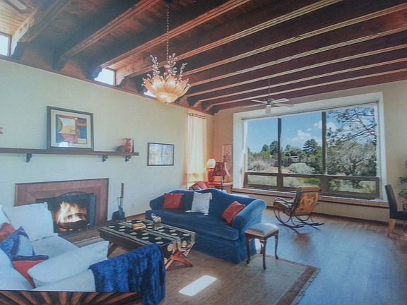 Close to downtown and everywhere else due to its excellent location, this beautiful Stamm house has elegant touches throughout in its high ceilings, very large living and dining rooms with large bay window,4 fireplaces and genuine oak hardwood floors throughout the main house. A bit unassuming on the outside, yet more than a bit grand on the inside with its crystal chandeliers and spacious ambiance, this house is perfect for entertaining, establishing your library on the built-in floor-to-ceiling shelves, or using the formal dining room as your media center. Artisanal Santa Fe touches throughout the house. In the main house two good-sized bedrooms ajoin a full bath, while the extra large master bedroom suite has its own kiva fireplace, skylights, built-ins, and enough room for a fur rug in front of the fireplace - as well as a cedar-lined closet and double vanity master bath. Extra large closets throughout the house, built-in storage in the large formal dining room, which faces French doors out to a large covered portal and outdoor living space. The fabulous cook's eat-in kitchen has its own skylight, kiva fireplace, walk-in pantry and plenty of space for all to hang out comfortably with the cook. The casita/guesthouse is connected to the main house by a single short hallway, so make this large and airy space, complete with its own kitchen, bedroom, bath, walk-in closets, porch and sunset deck into the perfect office, studio, hideaway, guesthouse, mancave, or multi-family space. Huge back yard is fenced natural habitat with outdoor living spaces and views of the Sangres. (Property is larger than fencing.) Enclosed front perennial garden ajoins the cool portal for a perfect outdoor living space; a private yoga deck in the backyard and a perfect porch for dining is a step out the kitchen door. This house has the serenity and privacy of the country but the convenience of shopping, schools, commuting, biking and hiking within minutes. The right pets may be possible, and we are happy to answer questions, send more pictures, and show you this gem of a house.