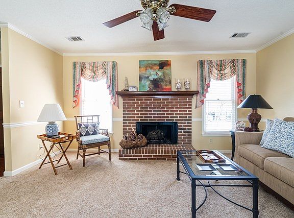 - Interior Features: Attic Storage, Carpeted Floors, Fireplace, Security System, Walk-in Closet, Gas Logs