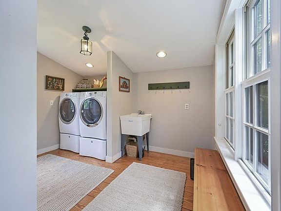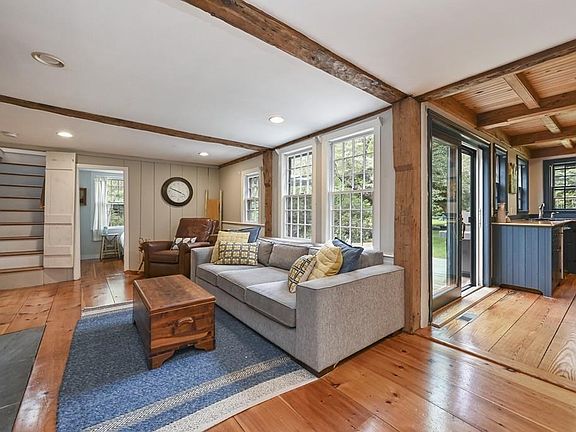 Antique lovers take note! This remarkable, renovated antique Cape home offers 2,035 sq. ft. of living space with an open floor plan & plenty of room to spread out. An abundance of charm, preserved character with built-ins, wide plank pine floors & hand hewn/gunstock beams are some of the features that will capture your heart. Recently remodeled kitchen offers custom cabinetry, maple counter tops, a center island, recessed lighting, a beamed ceiling, walk in pantry & updated stainless appliances creates a chef's dream kitchen. The first floor laundry/mudroom is located at the side entrance to the home. The sliding glass door opens to a large mahogany deck overlooking a gardener's paradise, 2.01 acres of stonewalls, peace & privacy! The 1st floor bath features an antique claw foot tub & a pedestal sink. The 2nd level offers an updated, cathedral master bedroom with fireplace & huge private bath with skylights, a second bedroom & nursery. A rare and refined offering!