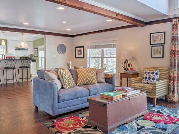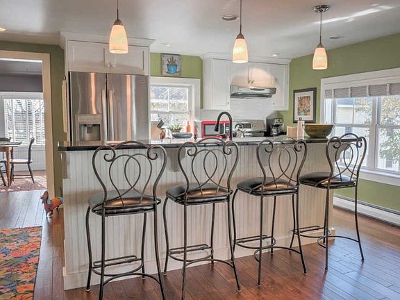 Executive rental in charming carriage house a close walk to downtown Keene. There is wonderful light though out this multistoried apartment. Two bedrooms, two and a half baths. Vaulted ceiling L-spaced living room open to kitchen with cozy stone front gas fireplace. Kitchen has updated appliances, breakfast bar, walk in pantry. Dining room with slider to private deck. Laundry room with hook-ups. Attached direct entry garage. Available 7/1. All utilities included. NO PETS, NO SMOKING $25 non refundable fee for credit check.