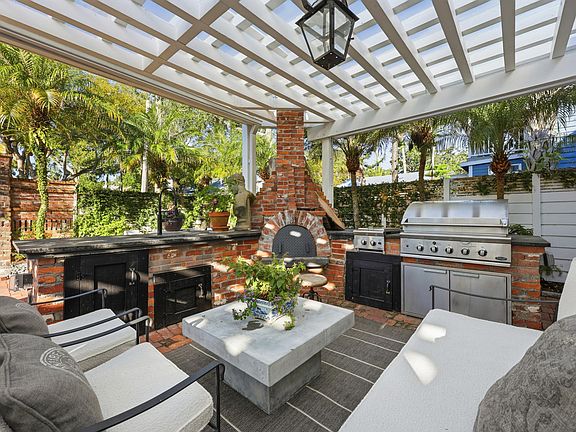 Welcome to one of the most captivating homes ever offered along the coveted Maria Sanchez Lake—arguably one of the most desired addresses in historic downtown St. Augustine. Just beyond the arched brick entry, a hidden sanctuary unfolds: a residence so enchanting that every guest leaves yearning for a return invitation. Equal parts refined and soulful, the home’s style evokes the quiet elegance of a Belgian estate, the restraint of a Darryl Carter design, and the serenity of Asian influence. Antique old growth teak, salvaged hard local oak, and artisan masonry are layered throughout, creating a curated backdrop built to endure both time and elements. The heart of the home was imagined for seamless entertaining. Glass folding-wall systems open the entire first level from front to back, dissolving boundaries between indoor and outdoor living. A spectacular summer kitchen—expertly built and bricked by a master old world mason—anchors the entry courtyard alongside a tranquil pool and spa-like bath. Inside, an impressive chef’s kitchen features an oversized Viking range, open shelving, and exquisite marble slabs flowing across both walls and counters. The dining and living spaces welcome guests with warmth, then spill effortlessly onto a dreamy lakefront terrace where birdlife performs daily. The original 1920s cottage charm marries beautifully with bold, modern lines. A sophisticated study lies beyond the sleek fireplace, framed by an antique arched wavy-glass window that captures shimmering lake views. Upstairs, the primary suite and a flexible guest suite—currently enjoyed as an extended sitting room—each offer private balconies overlooking the lake through a graceful specimen tree. Both include spa-worthy marble baths with distinctive lighting and fixtures. A spacious screened porch wraps the south side, perfect for games, reading, or quiet conversation, then transitions to a sunlit terrace ideal for herbs and roses. “The Little Nest,” a whimsical full ensuite retreat on the third floor, offers panoramic vistas across the historic skyline to the Intracoastal. Beautifully finished with marble, raised ceilings, and reclaimed woods, it invites sleeping, writing, dreaming, living. Across the brick courtyard, a beautifully detached garden studio offers a tranquil and private escape. With soaring ceilings, reclaimed-beam details, a charming bath, sitting area, and petite kitchenette, it feels like a romantic hideaway all its own. Originally permitted as a shed, this structure is not included in the home’s bedroom, bath, or square-footage totals. Still, its versatility shines — ideal for overnight guests, creative work, wellness, or quiet retreat. This extraordinary property is more than a home—it is an experience. A quiet secret hidden in plain sight, redefining historic St. Augustine living where cobblestone streets, shimmering waterways, and timeless architecture greet you every day.