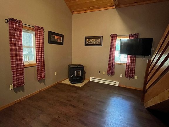 New Construction in 2017. This cabin on almost an acre, is in impeccable condition and offers cathedral ceilings, a great room, first floor bedroom, full bath, utility room and a loft that could sleep 4 more. Electric baseboard heat and a Pellet stove in great room. New well pump. See attached approval paperwork to make this a residential as well as seasonal property. Septic has been approved by the SEO for the township in 2017. Sit on the back deck w/attached Sun Setter awning or the screened front porch and enjoy the outdoors. Shown only to prequalified buyers.