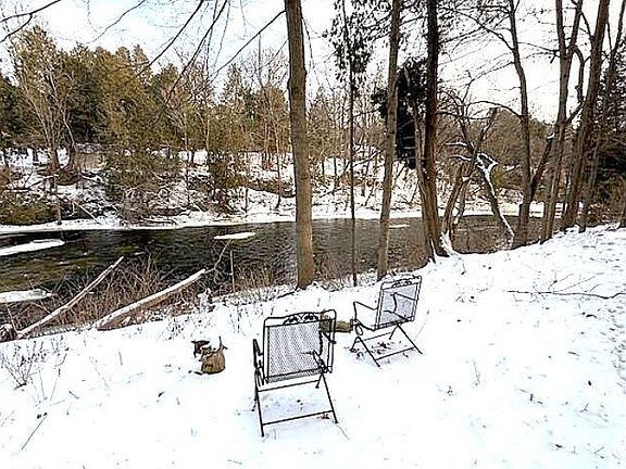 Beautifully updated all-brick 3 bedroom, 2 bath ranch set on a scenic lot backing up to the Milwaukee River, offering peaceful views and a nature-filled backyard setting. Enjoy the tranquil river backdrop from your 27' x 14' deck, with additional storage provided by an 11' x 10' detached shed. Inside, you'll find a bright, open layout highlighted by a fully remodeled kitchen that flows seamlessly into the main living areas. The home has been freshly painted throughout, with refinished hardwood floors, new baseboards, and new interior doors completing the clean, modern feel. The walk-out lower level offers fantastic additional living space with brand new carpet, a cozy gas fireplace, and direct access to the backyard and river views. Many recent updates provide peace of mind for new buyer