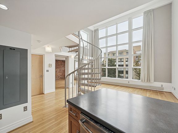 Chic, modern, and in the heart of Logan Circle, this open-concept one-bedroom + den, is a two-story penthouse loft with views of the iconic and vibrant 14th and the famed Le Diplomate. Exit the elevator onto a very private third level which is shared with only one other unit. When you enter unit 3A, you find a half-bath on the right as well as a closet to store your coats. The u-shaped kitchen has the perfect working arrangement for making gourmet creations while entertaining guests at the counter height bar. Stainless steel appliances, a new gas stove, a sink with a view, and a functional layout make this a kitchen fit for any foodie. Beyond the large open dining/living room space with soaring ceilings, is a generous-sized den/library/office. The steel spiral staircase leads up to the bedroom, full bath, brand-new in-unit. washer and dryer, and a spacious private terrace with lovely views. Your en-suite features a luxurious heated towel rack and has a modern, sleek feel. You control your own heating and air-conditioning personally within your apartment. The apartments at 1530 14th St NW were thoughtfully created to appeal to persons who do not plan to purchase a permanent home in DC, but require a stimulating residence for a tour of duty in the Capital for a few years. Feel good about cleaning, as you are afforded complimentary eco-friendly cleaning supplies and a vacuum. Feel good about cleaning, as you are afforded complimentary eco-friendly cleaning supplies and a vacuum. Gas and water utilities are also included with your lease. Secured parking is available for $250 a month per a separate agreement from the lease. Schedule a private appointment-only tour today, and say "There's no place like home" tomorrow.