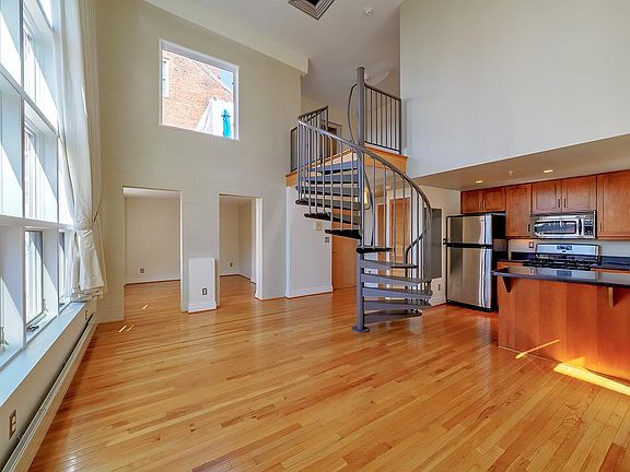 Chic, modern, and in the heart of Logan Circle, this open-concept one-bedroom + den, is a two-story penthouse loft with quiet, west-facing views of the city. Exit the elevator onto a very private third level which is shared with only one other unit. When you enter unit 3B, you find a half-bath on the left as well as a closet to store your coats. The u-shaped kitchen has the perfect working arrangement for making gourmet creations while entertaining guests at the counter height bar. Stainless steel appliances, a new gas stove, a sink with a view, and a functional layout make this a kitchen fit for any foodie. Beyond the large open dining/living room space with soaring ceilings, is a generous-sized den/library/office. The steel spiral staircase leads up to the bedroom, full bath, brand-new in-unit washer and dryer, and a spacious private terrace for dining al-fresco. Your en-suite features a luxurious heated towel rack and has a modern, sleek feel. You control your heating and air-conditioning personally within your apartment. The apartments at 1530 14th St NW were thoughtfully created to appeal to persons who do not plan to purchase a permanent home in DC, but require a stimulating residence for a tour of duty in the Capital for a few years. Feel good about cleaning, as you are afforded complimentary eco-friendly cleaning supplies and a vacuum because of this award. Gas and water utilities are also included with your lease. Secured parking is available for $250 a month per a separate agreement from the lease. Schedule a private appointment-only tour today, and say "There's no place like home" tomorrow.