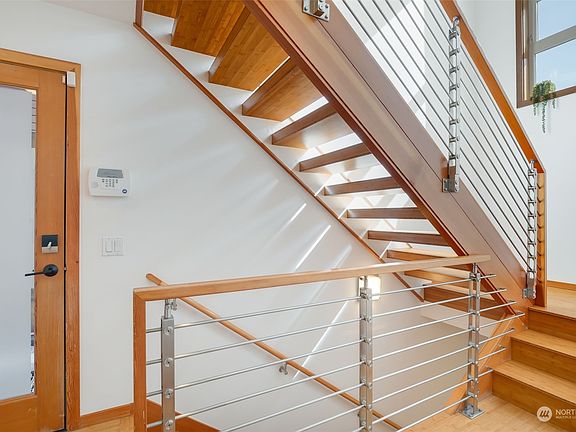 Situated on a dead-end street off the Mountain to Sound trail, this extraordinary home has a “wow” factor. One of four detached homes connected by a suspended steel bridge w/ mature greenery, creating an oasis in the city. Step inside to soaring ceilings & dramatic open staircase w/floating stairs. An open layout for entertaining w/ floor to ceiling windows, skylights, sleek kitchen w/gas stove. The primary suite has a walk-in closet & luxe bathroom: glass shower, soaking tub, dual sinks. The 2nd BR connects to a full bath. Plus a flex space w/ ½ bath (media rm, bdrm, office?). Relax in your fully-fenced private Zen garden. Off street pkg. 5 min walk to upcoming Judkins station. Just 0.8 mi to Beacon Hill Light Rail, eats, drinks & parks.