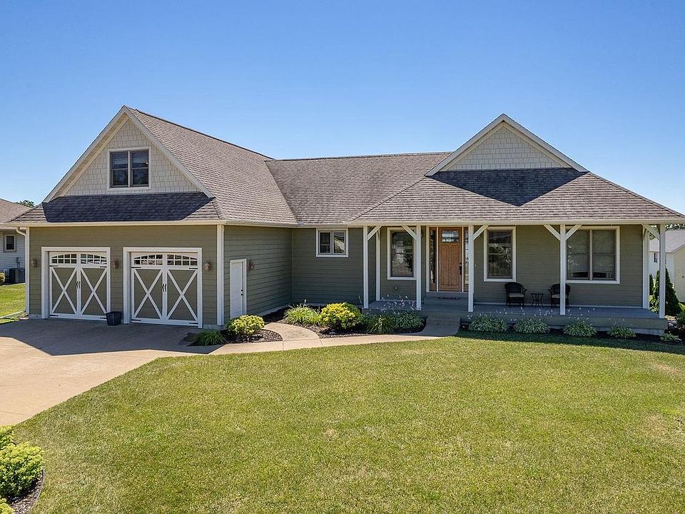 Beautiful home back on market-take advantage of this rare 2nd chance! Welcome to this executive, well-designed home in quiet desirable Baraboo neighborhood close to park & pond. Picture-perfect covered front porch welcomes you in to soaring ceilings, hardwood floors, inviting fireplace & stunning views of Baraboo bluffs. Gourmet kitchen & main level bathrooms include cherry Amish cabinets & granite counters. Split bedroom floor plan features owner's suite w/large walk-in closet, tiled shower, separate tub & more amazing views. 4 bedrooms, 3.5 bathrooms, bonus room above garage, finished lower rec room & second kitchen, allow plenty of space for hosting everything from holiday dinners to summer cookouts or for a mother-in-law suite. Start & end your day gazing at the bluffs from your deck.