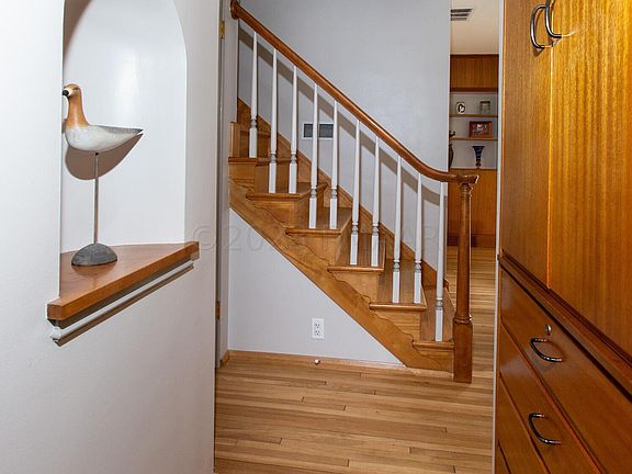 Location, charm, & preservation say it all in this adorable 1 1/2 story home on 7th St. Upon arrival, you can feel the ''New England Home'' vibe. It is delightful! Step into the foyer w all original mahogony walls & oak floors throughout. The primary is on the main floor with a WIC & en suite full bath. Entering into the family room, you feel all the feels. A wood burning fireplace w stone surround, mahogony built ins, a cozy charm, & a floor to ceiling bay window to enjoy the deck & fully fenced large yard. The kitchen was updated featuring quartz tops, SS appliances, stone backsplash, & white painted cabinets. Enjoy the walk up to the 2nd story w a large 2nd bedroom w a full en suite bath, great light, & large closets. The LL has a family room, storage, & rough in for bath or laundry.