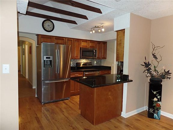 STONE ISLAND - CHARMING & UPDATED. This remodeled ranch home has an elegant kitchen with granite & wood cabinetry opening to spacious family room with triple slider to 47' lanai. Wide plank wood laminate throughout with carpet in the 2 guest rooms. Other updates include insulated windows & knock down ceilings. All the rooms are spacious, even the laundry room is 12x9. Lovely flow to this floor plan with split bedrooms and lots of windows and skylights. There are floor to ceiling windows in the living and dining rooms looking to the shady front yard yard. The 47' lanai is another living space & leads to the fenced back yard - AND this lot backs up to a wooded greenbelt affording lots of privacy. Oversized garage with work bench area and shed for your lawn equipment. Stone Island has a boat ramp to Lake Monroe & the St.Johns River, stables, tennis & acres of parks. This is a GOLF CART community and you'll meet all your neighbors as you zip around. The Spring to Spring Trail is a short cycle away. Everyone loves Stone Island