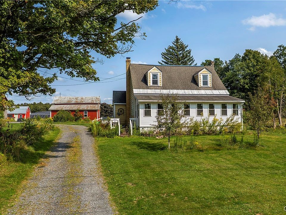 Country living on 4 acres, including a pond and garage/barn! Cute Cape Cod home with lots of frontage and space to sprawl out. 3 bedrooms, 1 bath, stainless steel kitchen appliances, a nice enclosed sun porch, and an extra room upstairs for an office, den, playroom or studio! Shine this one up with some sweat equity and you'll have a nice, country gem to call your own. Priced to sell for homebuyers of all kinds, including investors and owner occupants.