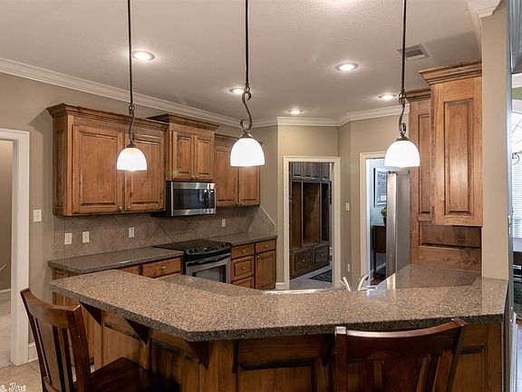 This beautiful Southwind home has it all! Split floor plan including 2 bedrooms with a full bath on their own hallway, a bedroom, full bath and bonus room upstairs. Plus a master bathroom with newly tiled shower, glass door, & a wall mounted safe! The roof is set to be replaced in early Oct., the microwave, dishwasher, & hot water heater have all been replaced in the past year & BOTH AC units were replaced within the past 3 years & are equipped with UV light filters! Garage features in ground storm shelter.