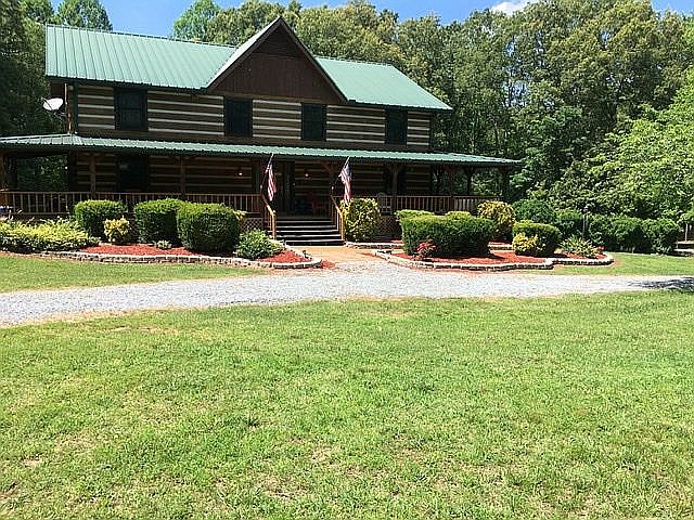 Custom design log home with 2 story great room tongue groove ceiling, exposed beams and real stone chimney extending 2 floors. Sq ft is approx. hardwood, tile and laminate on first floor with tongue n groove pine on second. Kitchen is large with refrigerator and gas range with 2 electric ovens and brand new above range microwave. Full basement w 1 garage, large finished room w walk in closet and another room / office ,toilet and washing room with unfinished area. All bedrooms are above average size. Surrounded by 8ft porch and covered patio with inground fiberglass pool and concrete deck- 40x42 all metal bldg 100amp service w insulation and natural gas heat with 2 garage doors als 2 car carport with electric. 40 ft RV port with sides and 50 amp service. The acreage is wooded with approx 4 acre pasture lots of wildlife.