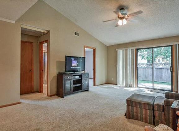 SUBERB VALUE HALF DUPLEX WONDERFUL RANCH FLOORPLAN. Air lock entry wet room. Wide open living space with vaulted ceilings, filled with light from skylight & sliding back door which opens to private fenced backyard & patio. Large kitchen with loads of countertops and cabinets opens to dining space and ALL APPLIANCES STAY. Master bedroom at front of home with bay window, en-suite full bath & walk in closet. 2 Bedrooms at back of house share jack & jill bath. 3rd bedroom opens to back yard. Double garage, fenced yard!