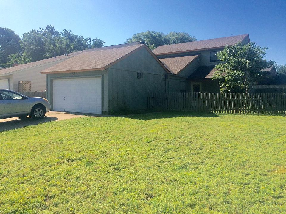 Contemporary near Tulsa Hills and Riverparks. Clean, ceramic tile downstairs, fireplace, laundry hookups, fenced yard, 2-car attached garage. 18-month lease. Not section 8. Master bed with bath downstairs, two bedrooms with bath upstairs. Includes mowing service. Video: https Not section 8. 18-month lease, includes mowing service. $750 deposit.