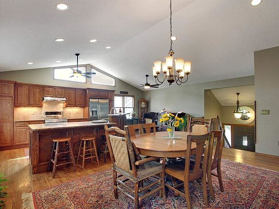 Welcome home! Nestled at the end of a quiet cul-de-sac in an established area, this 6 BR, 3 BA home is immaculately maintained and move-in ready. Enjoy an inviting foyer with a gorgeous wood staircase, neutral decor, an exceptional remodeled kitchen, open living spaces, beautiful hardwoods, newer carpet, fresh paint throughout, fully finished walk-out basement, brick fireplace, composite deck, a concrete patio, fenced backyard, sprinkler system and mature landscaping. The large gourmet kitchen is well suited for any cook with a spacious center island/eating bar, dual fuel gas Electrolux range, stainless steel Bosch refrigerator, granite counter tops, stone backsplash, pantry, under cabinet lighting and an abundance of rich cabinetry. The expansive open floor plan offers flexible spaces for dining and living with a vaulted ceiling and large windows to let in the natural sunlight. Retreat to a lovely master suite complete with a combination tub/shower, vanity with a beautiful granite countertop and a walk-in closet. Two more bedrooms and a hall bathroom complete the upper level. Entertaining is made easy in the finished walk-out basement featuring a large rec/family room with a brick, wood burning fireplace, three additional spacious bedrooms, one full bathroom, and storage. Extend your living space outdoors on the composite deck with steps leading down to a concrete patio in a fenced backyard. Save on maintenance costs with a Class IV impact resistant roof, vinyl siding and many replacement windows. Neighborhood amenities include a swimming pool (with a lifeguard), tennis courts, basketball court and a playground. The attic has 512 square feet of storage space with substantial plywood flooring for heavier items. Pride of ownership shows throughout this pristine charmer. Schedule your private showing today!