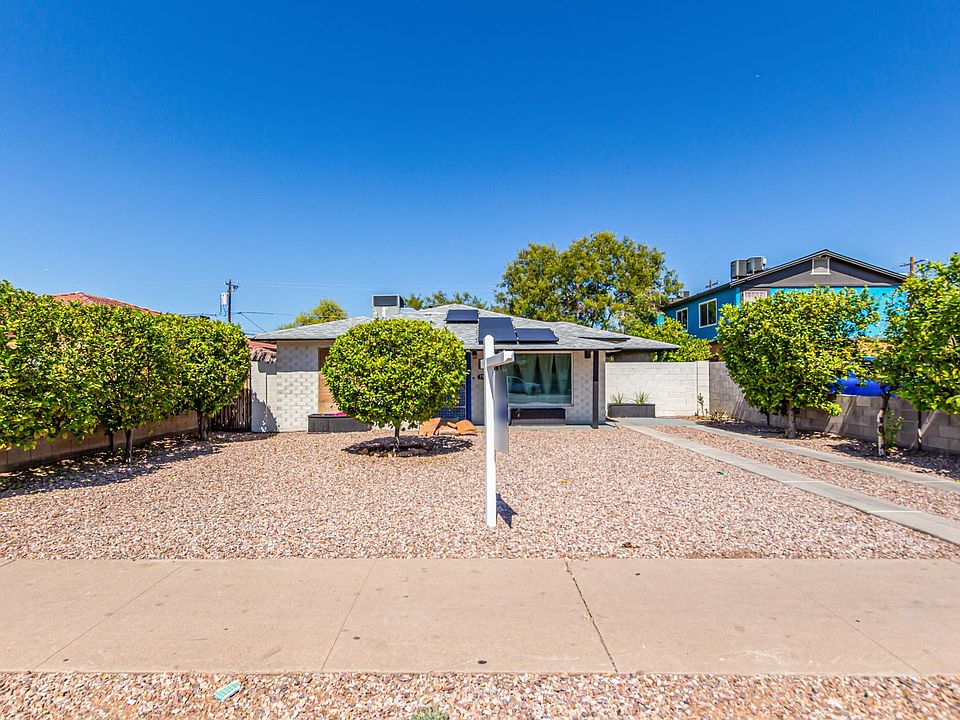 Check out this energy-efficient 3 bed, 2 bath rental home in the heart of Phoenix! Mere minutes away from the city's Downtown area & featuring a charming brick facade a lovely front yard w/fragrant citrus trees, and back alley access! Discover a sizeable open floor plan w/durable tile flooring and neutral palette throughout. The kitchen is equipped w/shaker cabinetry, quartz counters, a pantry, tile backsplash, and all the SS appliances you'll need for home cooking. Primary bedroom showcases stylish wood-look flooring, outdoor access w/elegant French doors, and a private ensuite w/a sliding barn door & dual vessel sinks. Also including a wonderful backyard w/a covered patio, paver walkways, a convenient storage shed, and a refreshing hot tub, this home is a true gem! Don't miss out!