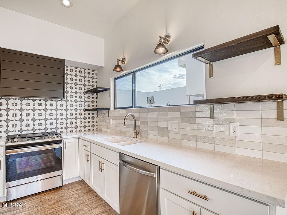 Live in the luxurious custom home of your dreams. Craig Douglas Homes specializes in designing and building homes tailored to their owner's unique personal needs and sense of style. This floor plan features 3 bedrooms, 2 baths w/ a great room style and detached 2 car garage. Countless designer details including exposed beams that accentuate the soaring ceiling to add posh flare. Clean lines, bright open floor plan and gorgeous accents. There are a total of 5 new homes being built in this historic neighborhood. Short distance, only 1 block, to Banner University Medical Center and just minutes away from the University of Arizona campus. Professional pictures display the stunning design of the Craig Douglas Waverly Walk.