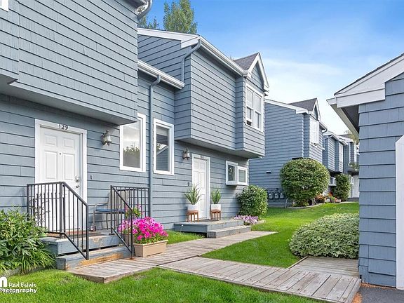 Cute & cozy end-unit with low maintenance living! Kitchen, half bathroom and living room on main level leading to a patio with a fenced back yard. All bedrooms, two full bathrooms and laundry upstairs! Laminate flooring, fireplace, heated garage, plenty of closet space and private bathroom in master bedroom. Conveniently located close to the Seward Highway, Southside grocery stores and shopping.