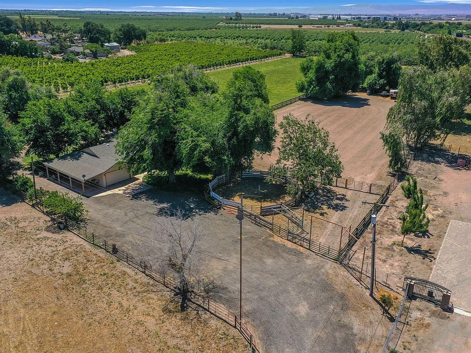Exceptional value for this beautiful ranch property complete w/ a move-in ready home. Possibility to add 2nd home or ADU! Situated on nearly 6 acres, the features of this 3 bedroom 2 bath home include: Spacious family room, kitchen and master suite, Milgard dual pane windows, jetted tub in master suite, real hardwood flooring, 2 car attached garage. Bring your horses, RV's, boats, and more, there is room for ALL! This property boasts a horse barn, tack room, round pin, outdoor riding arena, 40x40 shop with an 18x40 carport, car lift and 220v power. 48x42 pole barn to store RV toys or hay, flood irrigated pasture, beautiful mature shade trees and a solar powered electric gated driveway. OWNED solar panels mounted on the roof of the shop provide ultra low electric bills. Farm to fork is a reality here! Rich, fertile soil, fruit trees, room for chicken coops and more! Enjoy the privacy of country living yet only minutes to I-5 & HWY99!
