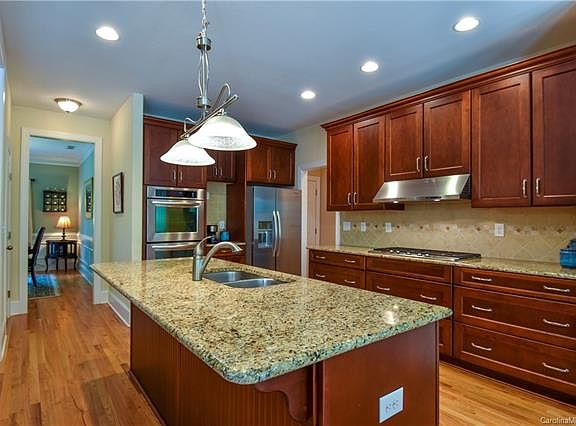 Your own country manor. Custom home built with attention to details. Beautiful inside and out. Extended/vaulted recess ceilings, Extensive molding, granite surface counter tops and tile backsplash, 15" Deep Custom Cabinets, Hardwood floors. Kitchen Aid Appliances with double oven, Large Stone Fireplace. Sound insulation in wall separating master suite from living area, large 2000 sq ft paver-block patio Court yard Patio area includes Post Lighting adjacent to a summer house with gorgeous stone covered Fireplace, Heated and cooled attached workshop w/half bath , gutters with premium leaf screens. Separate Two Garage door store building separate from main home w/ grill-cover porch . Back and front yard 20 zone irrigation system Home owner has a raised bed fenced garden with irrigation. Many more upgrades too numerous to mention. A must see home.Easy quick commute to down town Charlotte or airport.