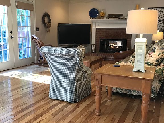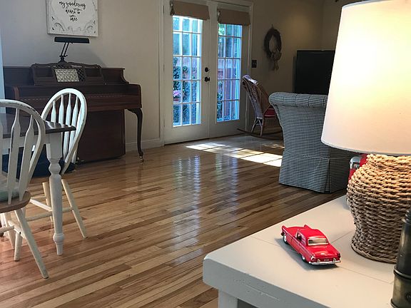 Wrap around porch, corner lot of cul de sac w/extra parking. This 4 BR, 2 1/2 BA home priced at $349,900 has a barn door one bedroom, plus huge bonus, dining & eating area, hardwoods/new carpet/tile, open floor plan. Walk-in closets in two of bedrooms along w/extra large closet another bedroom, upgraded molding, walk-in attic plus pull-down attic, garage w/storage room, gutters. Fenced, shaded backyard, mature trees & landscaping w/irrigation, new AC unit. Many recent updates, as is.
