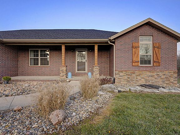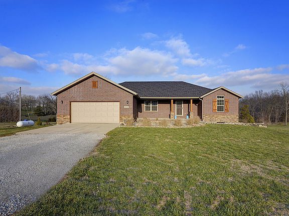 Beautiful, walk-out basement home on four acres with easy access to Republic, Clever, Nixa or Springfield. The full brick and stone front features a large porch with cedar and stone pillars. Step inside the front door and you are greeted by a wide-open floor plan with GORGEOUS, real maple, hardwood floors which flow through the entire first floor with the exception of the kitchen, bathrooms and laundry. The living area features the maple floors, vaulted ceiling, quaint decorative shelving and beautiful French doors leading to the large, covered deck which overlooks the acreage. The HUGE kitchen features beautiful cabinets, granite counters, stainless appliances, gas range, breakfast bar and a subway tile backsplash. The full master suite features more maple flooring, tray ceiling and a large bathroom with a large his & hers sink vanity, granite counters and a large walk-in closet. Both of the other first floor bedrooms also feature the maple floors and the guest bathroom has granite counters as well. Downstairs is a HUGE family room with an amazing wet bar area which features more dark stain cabinets with built-in wine rack, granite counters, a beautiful tile backsplash plus a stainless-steel dishwasher and TWO drink fridges which STAY! Both basement bedrooms and the basement bath feature the same beautiful luxury vinyl floors and the bathroom has granite counters, framed mirror and beautiful fixtures. Think that's all? NOPE, there's more! Out back you'll find a ready-to-go chicken coop and a fabulous fire pit, fully landscaped and ready for entertaining! Don't wait, call today for your private tour of this amazing property! Home Warranty Included!