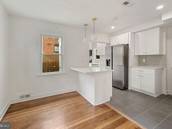 Gorgeous, recently remodeled end unit row home on a quiet block! Large, sun-filled living room. Refinished hardwood floors and freshly painted throughout. Separate dining room opens to addition off back containing brand new chef's kitchen with breakfast bar peninsula, gas range, built-in microwave, full size french door refrigerator, quartz countertops, and brass fixtures. Stunning wood railing detail leads you upstairs to two bedrooms with large closets, a brand new bathroom with wood vanity, brass fixtures, and new tiling throughout, and a landing with extra linen closet. Fully finished basement with separate entrance contains new floors, closet, brand new large bathroom with walk-in shower, and washer/dryer. New central air conditioning and heating throughout. Outside the basement door is a large storage area perfect for bikes and tools, as well as additional large shed in back yard. Fully fenced in front and back yards with grass in front and patio in the back. Just up the hill from metro, historic Anacostia, and the forthcoming 11th St Bridge Park!! New DC Prep Middle School charter going in across the street! Landlord prefers monthly income of 3x monthly rent.