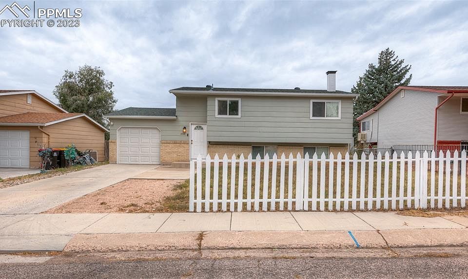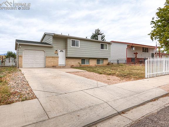 Your new home is situated on a cul-de-sac in a serene and mature neighborhood with beautiful large trees and foliage. Enjoy this nicely kept home with mountain views and easy access to schools, parks, hiking trails, shopping centers, restaurants, Fort Carson, Peterson and Space Force Bases. Situated on a nice size lot with ample outdoor space (plus, a dog run), step inside to this bright and sunny home. You'll enjoy the cozy living room with luxury vinyl flooring which steps out onto a 10x10 wooden deck with mountain views. The eat-in kitchen has been recently updated with all new cabinets, countertops and stainless-steel appliances. The two bedrooms on the main level are spacious and comfortable and they share an updated bathroom. The large garden level family room has new carpet, a wood-burning fireplace (for those cozy winter nights), and a large storage closet. The two additional bedrooms in the lower-level share and bathroom and have brand new carpet. Enjoy your large backyard with endless possibilities. Newer roof, new sewer line, extra off-street parking, and so much more!