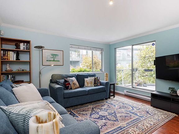 Looking for ultimate lifestyle? There is truly no better place to live! This exclusive waterfront property located on the Seawall in False Creek will not disappoint! Well-designed 2 bed 2 bath with a nice sized balcony. Master bedroom comfortably fits king- sized bed. Surrounded by lush gardens, enjoy views of the mountains and downtown. Recent upgrades include engineered hardwood flooring and new appliances including an induction stove and full-sized W/D. Located just steps to the Seawall, enjoy all the conveniences of walking to your favourite local shops and restaurants! Short walk to Granville Island, 4th Ave shops and Kits Beach. City of Vancouver leased land currently expires 2046.
