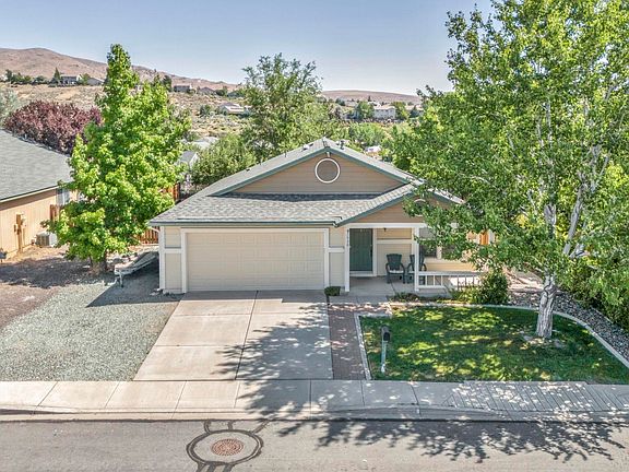 Inviting and meticulously maintained single level 3 bed 2 bath home in Northwest Reno with gorgeous views! No HOA, this home is ideal for both full-time living or as an investment opportunity. Cozy and charming with vaulted ceilings, the interior has been recently painted and features 2 sky tube skylights, stainless-steel dishwasher, a newer stainless-steel sink, LED kitchen lights, and newer carpet replaced throughout!, The kitchen also features an island with an attached breakfast bar. The main suite features a walk-in closet and dual sinks. Equipped with a drip system, the mature landscaping is charming yet low maintenance, featuring shade trees, a crab apple tree, and beautiful flowering bushes. Enjoy vast views of Peavine Mountain and the surrounding areas from your back patio, and extra privacy with the back neighbors situated a comfortable distance away! This location is very sought after as it’s conveniently near shops, restaurants, schools, recreational trails, Somersett, and just a 20 minute drive from the Reno-Tahoe airport. Schedule your showing today!