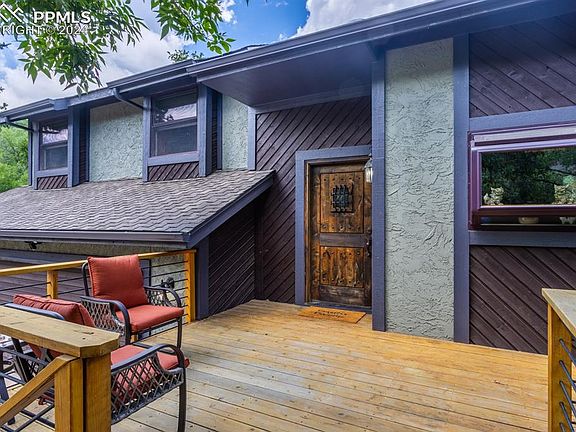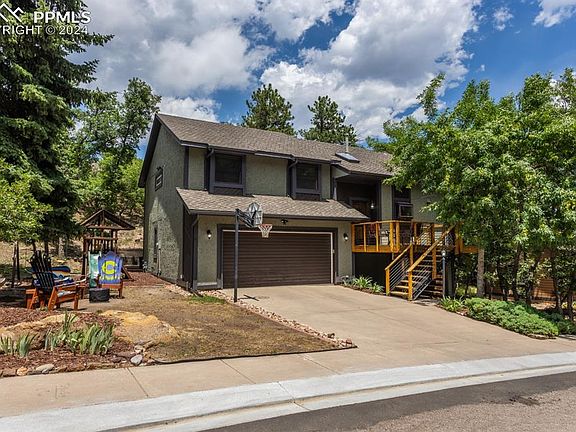 Discover Your Dream Retreat: A Home That Feels Like a Permanent Vacation! This custom home is nestled on a quiet, secluded cul-de-sac on the coveted West side, this completely remodeled and updated home offers an unparalleled living experience. Surrounded by majestic trees and captivating rock formations, this property, where you enjoy outdoor living like few others can. The enormous deck spans the entire back of the home, perfectly perched among a large thicket of trees, with a storybook-like second wing leading to a path up the slope of your backyard to a playhouse/fort. From the top of your yard, relish 360-degree views Experience glorious Colorado sunsets against the mountain range, watch The Thunderbirds during AFA graduation week, enjoy the Labor Day Lift-off weekend hot air balloons, and multiple fireworks shows on the 4th of July from your “Top of the World” perch. This home is situated in a neighborhood where outdoor living is a way of life, with cyclists, dog walkers, and a variety of wildlife, including bobcats, deer, wild turkeys, all making frequent appearances, while an occasional black bear might make an appearance as well. The stunning master suite has a walk out to the deck as well as an oversized shower and walk-in closet. With 4 bedrooms, 3.5 baths, and a full 2-car garage, there’s plenty of space for everyone. The oversized 0.4-acre lot is full of trees, providing ample privacy and play space, including a fun clubhouse. Custom interior and exterior paint throughout, a brand new Smart WiFi Enabled LG Double Wall oven with TurboCook Speed oven & True Convection Oven, Washer and Dryer, and new carpet on the upper and basement levels. The home is xeriscaped in the front and back with natural landscaping, meaning no yard work, and is lined with an invisible fence for the family pooch. Your forever vacation home is ready and waiting.